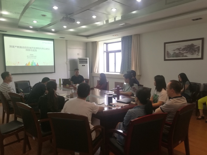 5月22日下午管理学院信息管理系邀请浙江大学城市学院吴明晖教授做题为《深度产教融合的在线开放课程与专业建设探索与实践》的报告。