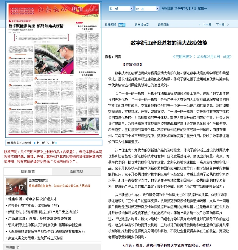 周青(杭州电子科技大学管理学院院长、教授) 《光明日报》(2020年05月11日 05版)
