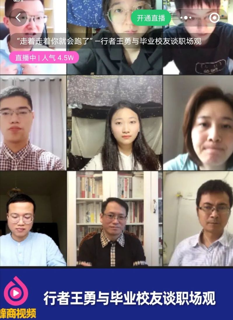 在提问环节,2016级人力资源专业学生代表郑珂、2016级工商管理专业学生代表孟泽铭、2018级信息管理与信息系统专业学生代表王天一分别就新入职场应该在横向还是纵向进行知识拓展,在校期间应如何培养各种技能等各自感兴趣的话题同嘉宾们进行了交流和讨论。管理学院党委副书记陈新峰对各位校友关心支持学弟学妹们的就业和成长表示感谢。我校师生校友共计4.7万人次观看了现场直播。