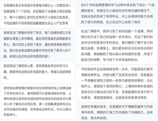 在期末的调研中,虽然有的同学吐槽任务繁重,但“少年辛苦终身事,莫向光阴惰寸功”,付出终有回报,同学们收获满满。