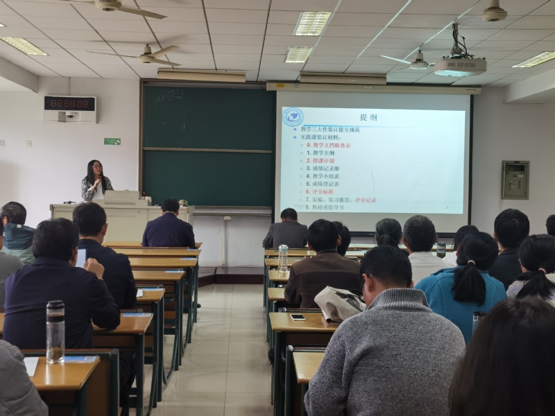 会议中,院督导组长高海霞老师从四个方面对教学出现的主要问题与对策建议进行了剖析:1、充分的课前准备,准确分析学情;2、必要的课后总结,不断的反思和学习;3、精选教学内容,灵活运用多种教学方法,提升课堂效果;4、立德树人,将价值引领贯穿于学生知识传授和能力培养中。校督导魏洁老师对督导工作中发现的教学质量问题进行了分享,例如课堂授课中存在的问题、平台建课上的问题、教学文档检查中发现的问题和教学事故的认定规定等。