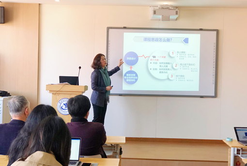 郑佳老师从育人目标、思政元素、微课制作和组织实施四个方面介绍了课程思政微课的目标设计、前期规划和拍摄要点。郑老师指出微课设计目标要基于课程育人目标并考虑实现方式,微课思政元素融入要“如盐在水”,组织实施要形式多样、润物无声,使育人元素内化于心,外化于形。