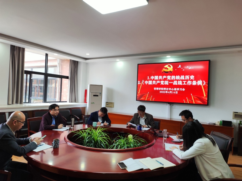 4月14日下午,管理学院党委理论学习中心组召开专题学习会,认真学习中国共产党的统战历史和《中国共产党统一战线工作条例》。会议由党委书记陈新主持,党委理论学习中心组成员、无党派人士代表杨伟参加此次专题学习会。
