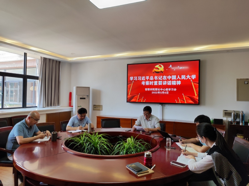 5月6日下午,管理学院召开党委理论中心组学习会,深入学习“习近平总书记在中国人民大学考察时的重要讲话精神”。会议由学院党委书记陈新主持,理论学习中心组全体成员参加学习。
