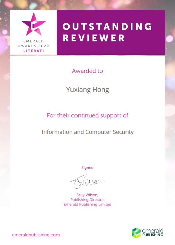 近日,2022年度Emerald Literati Awards for Excellence结果公布,全球知名学术出版机构Emerald在全球范围内授予Outstanding Reviewer(杰出审稿人)的称号,以表彰同行评议人员在学术中的突出贡献。我院洪宇翔副教授凭借其在评审工作的优异表现,荣获“杰出审稿人”奖项。