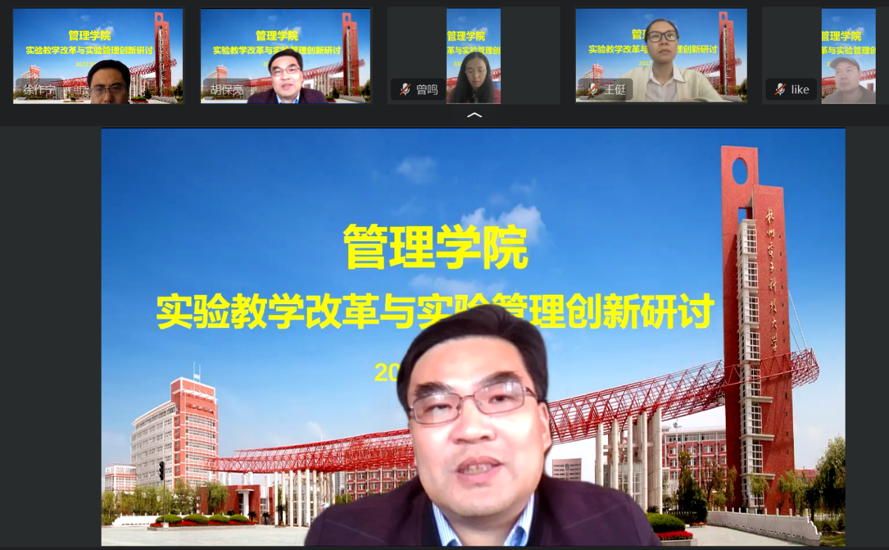 2022年10月12日下午,管理学院通过钉钉视频会议开展了实验教学改革与实验管理创新研讨,主管院长胡保亮教授、信管系主任曾鸣副教授及实验中心三位老师参加了研讨。