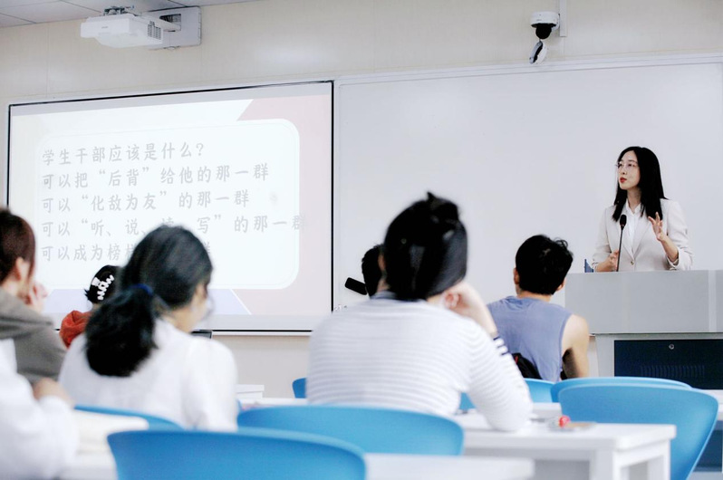 会议伊始,李风啸从“什么是学生干部”“学生干部应该是什么”引入开展今天的班委培训。她强调学生干部不仅要对其职位形成清晰的认识和强烈的职位责任感,还要成为班级同学心中“听、说、读、写”的榜样。