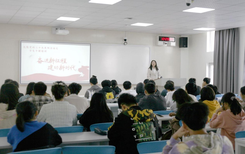 习近平总书记在党的二十大报告寄语青年:“广大青年要坚定不移听党话、跟党走,怀抱梦想又脚踏实地,敢想敢为又善作善成,立志做有理想、敢担当、能吃苦、肯奋斗的新时代好青年,让青春在全面建设社会主义现代化国家的火热实践中绽放绚丽之花。”10月23日,在第7教研楼北306召开管理学院2022级全体班委培训会,深入学习习近平总书记党的二十大重要讲话精神,提高学生干部的角色意识和使命担当,强化学生干部工作方法与工作艺术。会议由2022级辅导员李风啸主持。