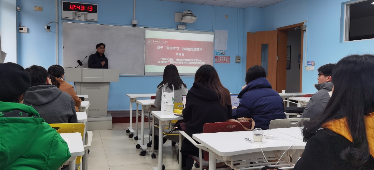 2022年11月30日,由“数字化管理”课程思政教学研究示范中心、“课程思政”教育教学路径与方法教学实践共同体主办的“基于‘双环学习’的课程思政教学”讲座在7教南109室顺利举行。本次讲座由管理学院副院长、“数字化管理”课程思政教学研究示范中心负责人胡保亮教授主讲,“课程思政”教育教学路径与方法教学实践共同体负责人黄鹤老师主持,来自全校的30多位教师参加了本次活动。