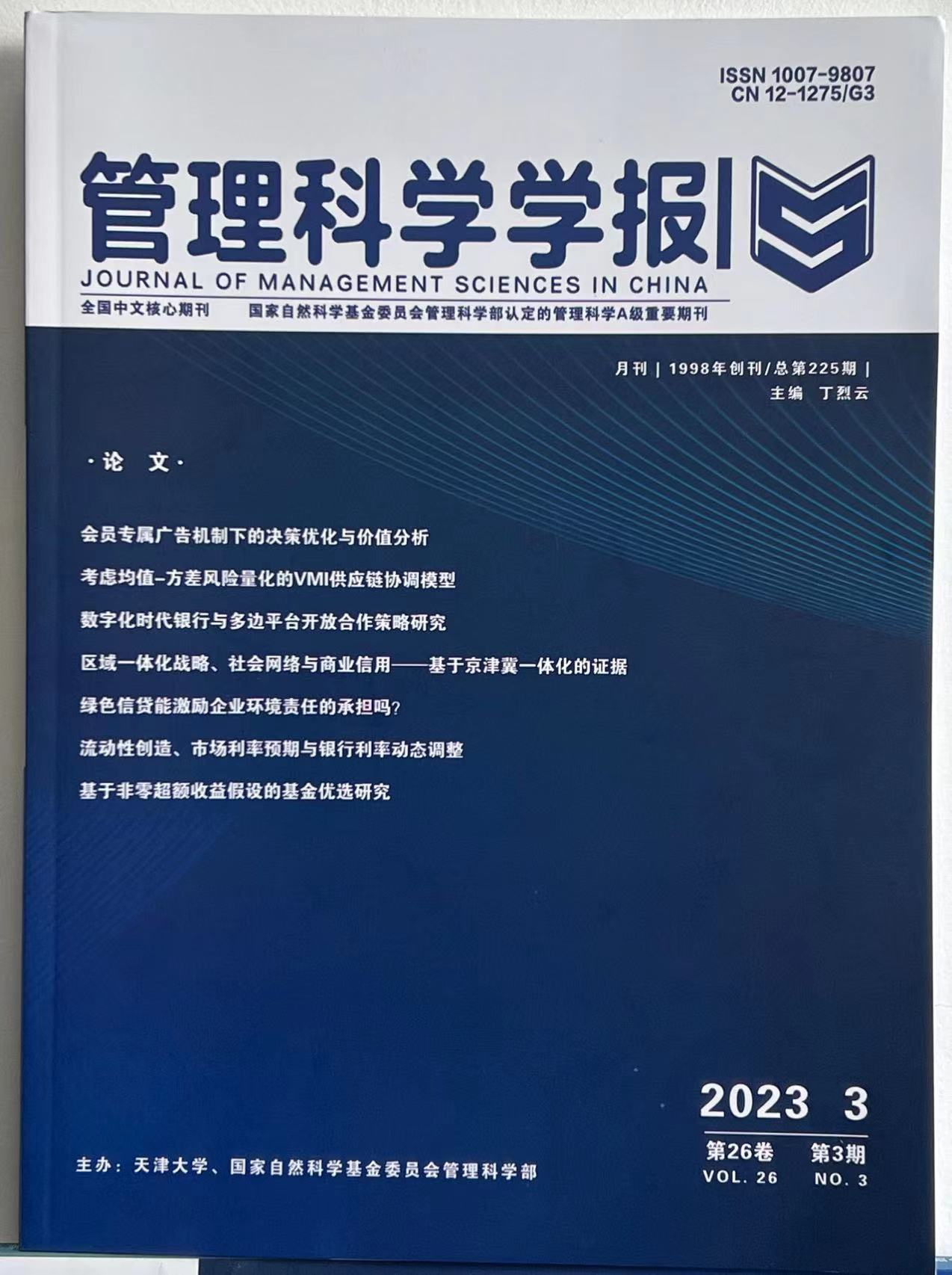 近日,以我院蔡建湖教授为第一作者、学院院长周青教授为通讯作者的论文《考虑均值-方差风险量化的VMI供应链协调模型》在管理科学领域中文顶级期刊《管理科学学报》上正式发表。