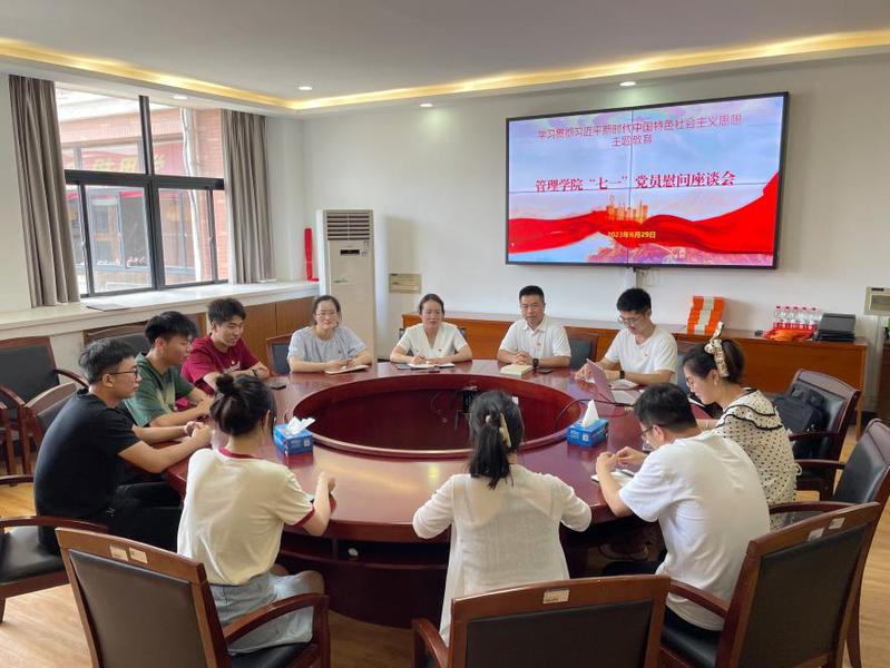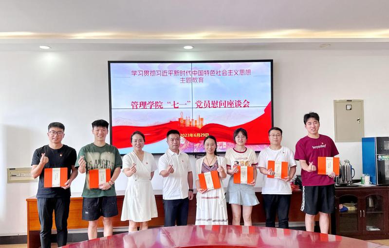 为庆祝建党102周年,进一步开展好学习贯彻习近平新时代中国特色社会主义思想主题教育和落实党内激励、关怀、帮扶机制,管理学院于6月29日开展“七一”学生党员慰问座谈会。管理学院党委书记李国冰、学院学工系统全体辅导员、各学生党支部书记以及学生党员代表参加。座谈会由学工办主任张晓琪主持。