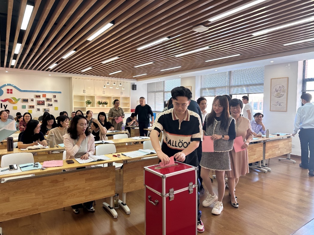 大会采用无记名投票,差额选举的方式,产生了新一届教代会组长联席会和分工会委员会(两委合一),共有7名委员组成。