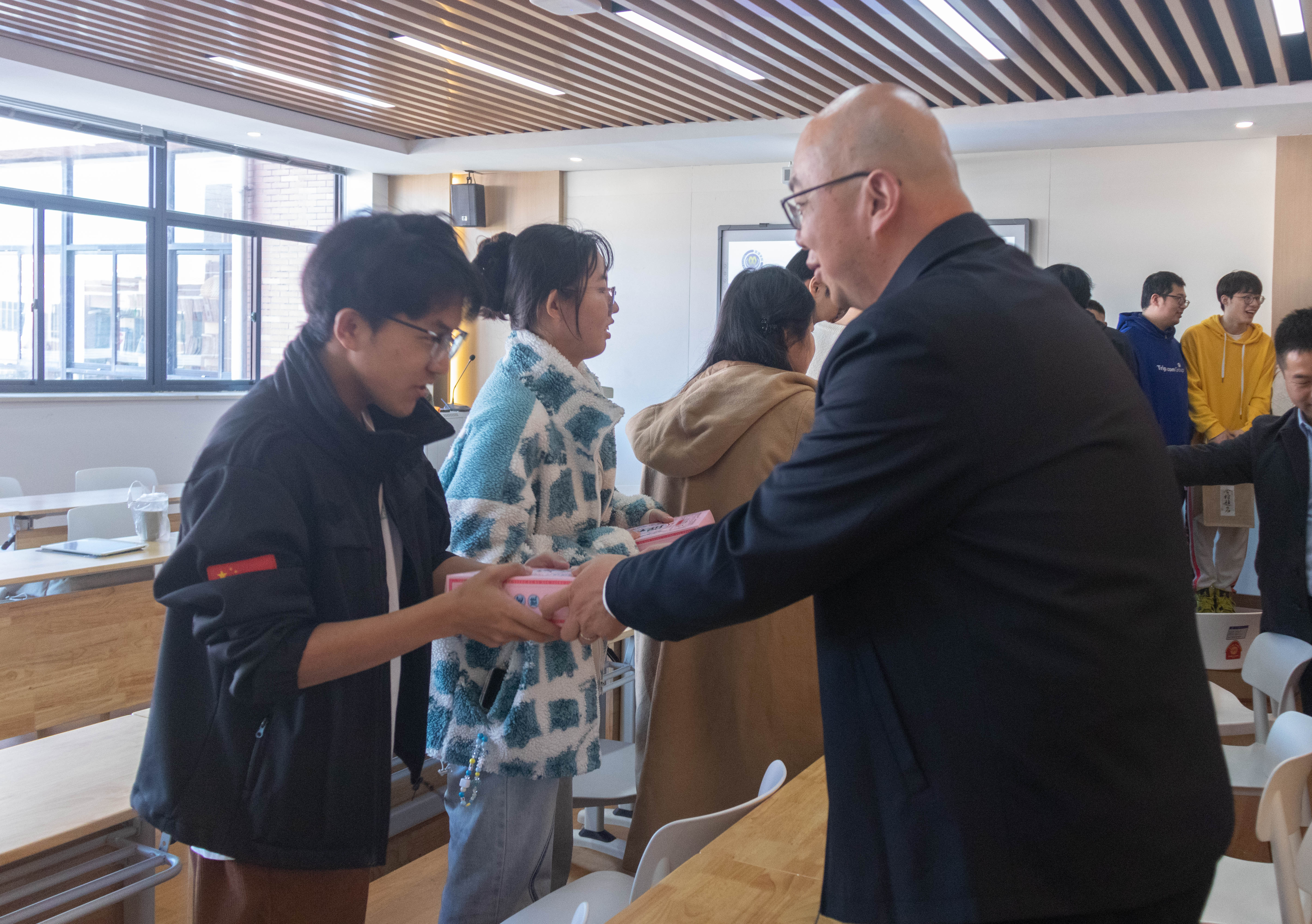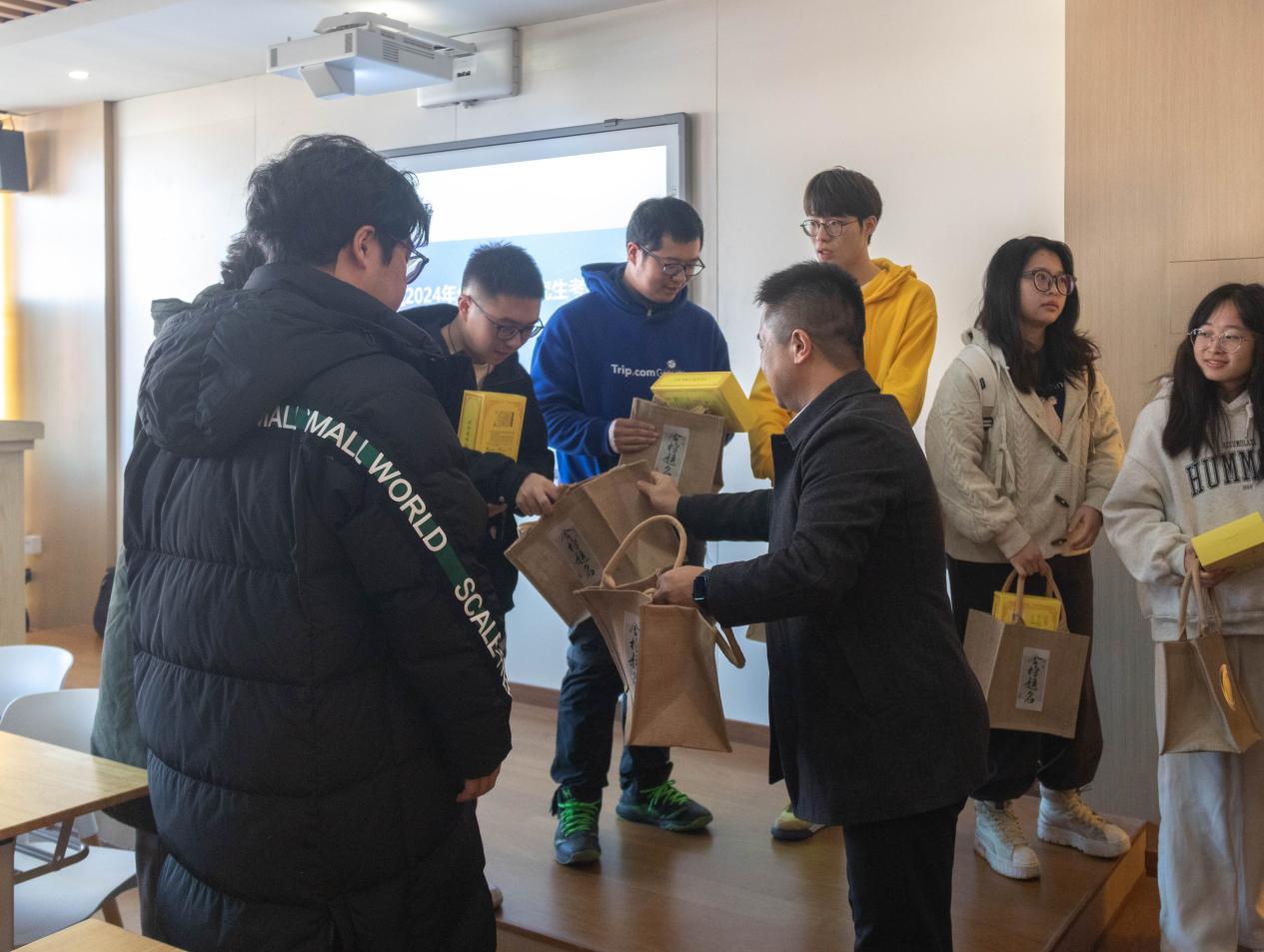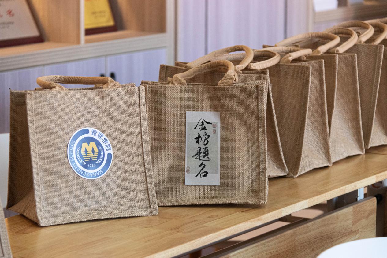 “考研大礼包”外包装印有“金榜题名”字样,内有定胜糕、暖手宝等物品,饱含学院对考研学子的美好祝福。同学们纷纷表示,一定会全力以赴,以饱满的精神状态迎接即将到来的考试,努力实现考研梦。