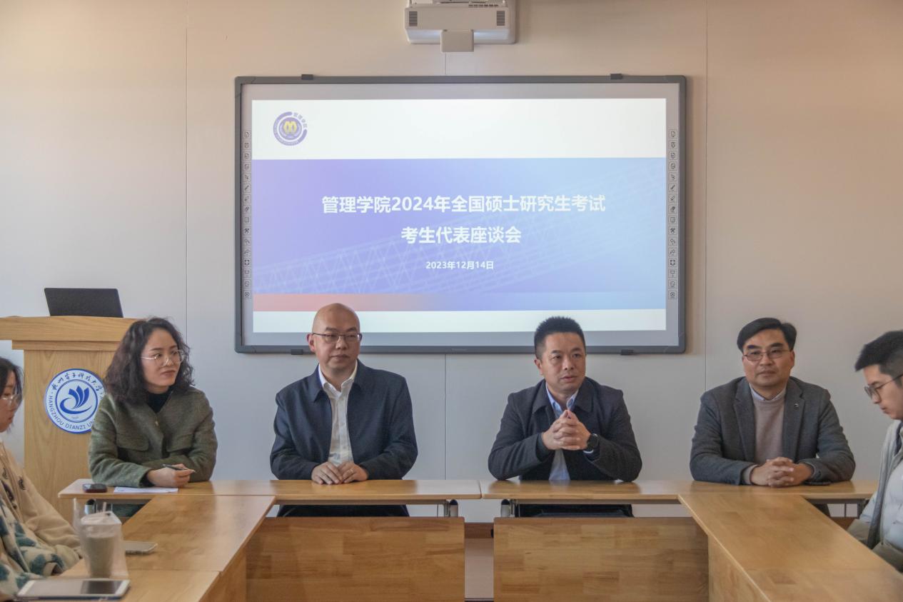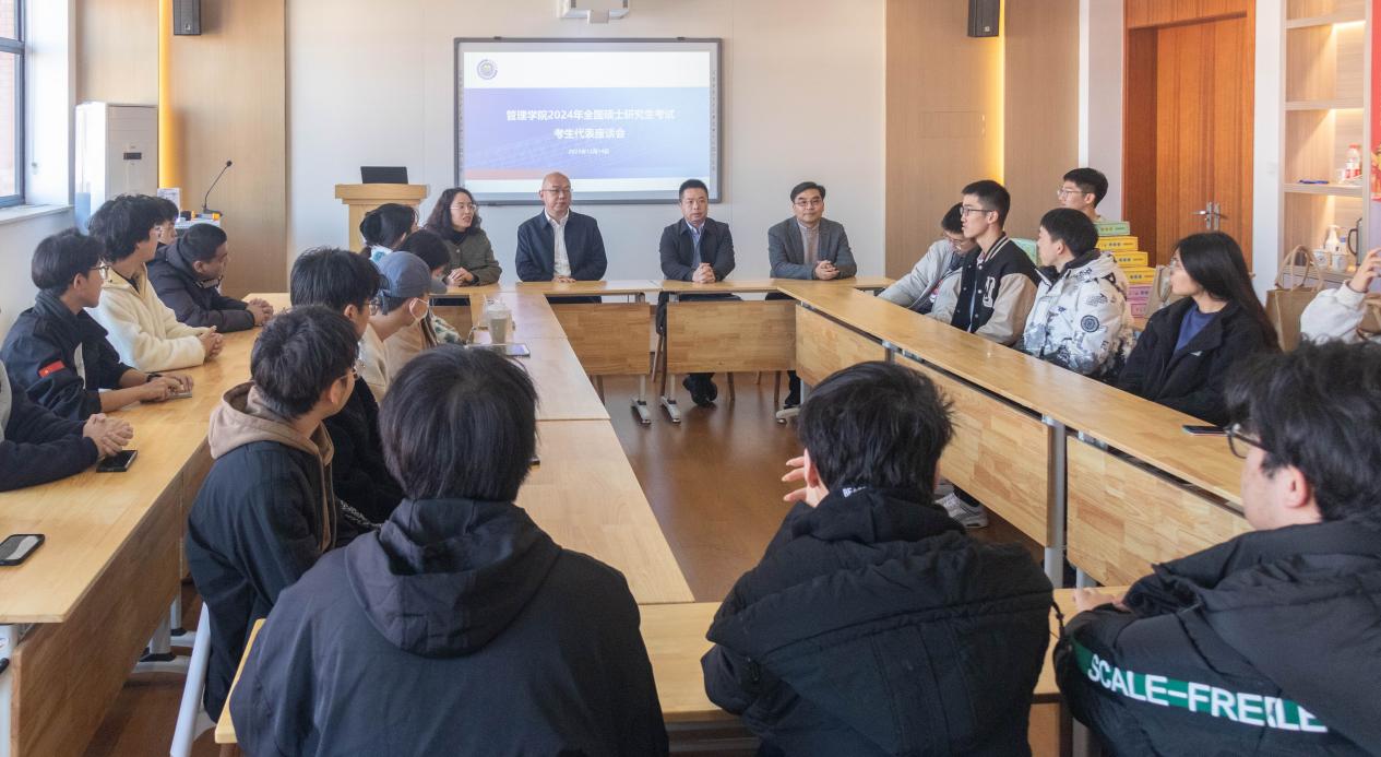 “研”途送温暖,助力考研梦。2024年全国硕士研究生入学考试将至,为鼓舞管理学院2020级考研学子士气、增强考研信心,12月14日,管理学院党委书记李国冰,院长杨伟,副院长胡保亮,学院学工办主任、毕业班辅导员及30余名考研学子代表在第九教学楼530进行座谈慰问。