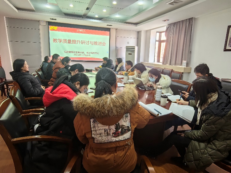 为推进教研活动持续化、制度化,以及为推进提升教学质量与深化教学改革,12月20日,信息管理系在9教402召开教学质量提升研讨与推进会。会议由信息管理与信息系统专业负责人杨洁老师主持,信息管理系全体教师出席会议。