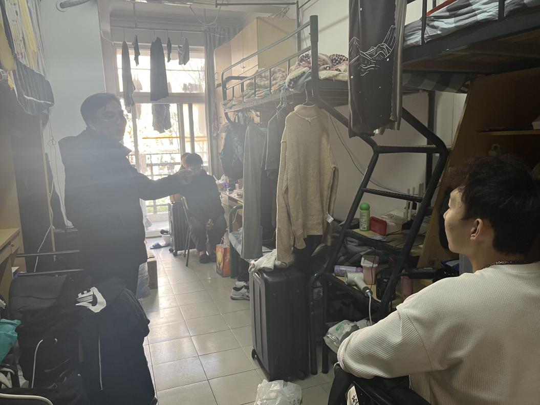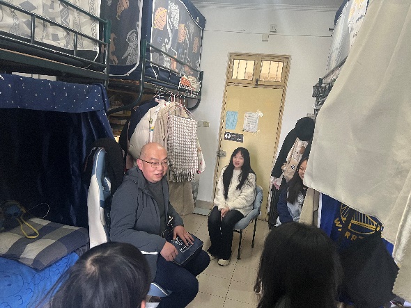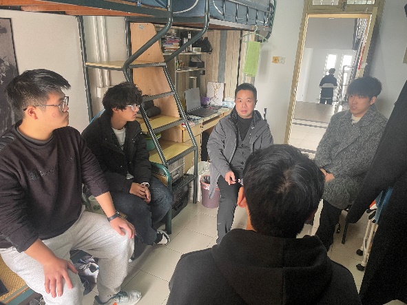 学院院长杨伟走访联系结对寝室13号楼504、11南119,他深切询问了同学们的期末备考情况、课程难度、未来规划、对专业的困惑,并认真听取了学生对专业建设的意见及建议,他对学生强调说:大学本科阶段要在学好专业知识前提下,努力锻炼自己的思维能力,形成自己的管理思维;另外,要注重自身的综合素质能力,提升职场核心竞争力,日常多阅读多交流,提升语言表达与逻辑性写作。