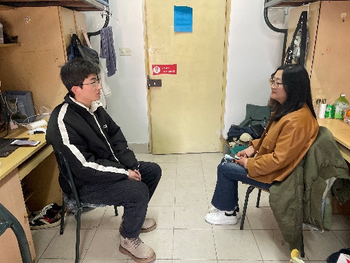 学院党委统战工作委员张蕊走访联系结对寝室22号楼628、4北618,与我院2022级交换生以及2020级毕业生展开亲切交谈。她叮嘱交换生认真了解两所学校在学分换算方面的政策,充分利用这段交换学习的经历提升自己并圆满完成学习任务。她询问了毕业班同学的考研情况并对学生提出的关于研究生复试以及论文撰写问题做了详细解答。她建议同学们要利用接下来的时间进一步夯实理论基础、提升英语能力应对研究生复试,另外要认真规划未来,树立明确目标并为之努力。