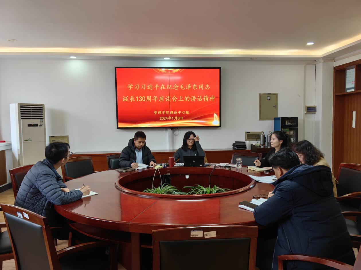 1月8日,管理学院理论学习中心组召开学习会,学习习近平主席二〇二四年新年贺词以及习近平总书记在纪念毛泽东同志诞辰130周年座谈会上的重要讲话精神。管理学院党委书记李国冰主持会议,学院理论学习中心组成员参会,管理学院院长杨伟列席,学院党委委员张蕊领学。