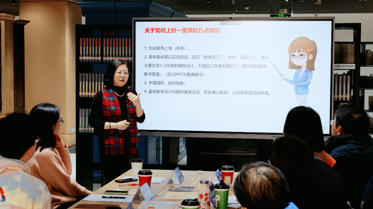 最后,郑佳老师以“怎么上好一堂课”为题,为《管理学》课程组新进教师传授了授课经验。她认为年轻教师要有自己的课堂设计,深耕一门课程,借助集体的力量,快速形成自己的授课特色,从而完成新教师的转型。