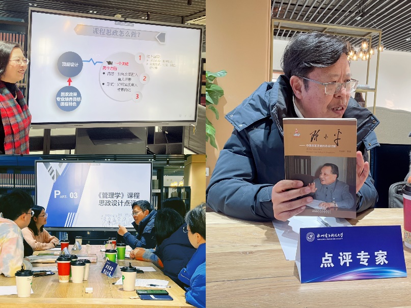 在专家辅导环节,段显明老师指出,每门课的课程思政教学都应该像《管理学》这门课一样有一个总的设计和提炼。他进一步建议《管理学》这门管理类的经典课应更加深入地从习近平新时代中国特色社会主义思想这一经典理论中汲取育人元素,从而更加彰显该门课程“经典熏陶”的课程思政特色。郑佳老师建议课程组可以通过集体备课、集体研讨的方式构建该课程“经典熏陶”系列案例库,发挥团队的力量,共同打磨课程思政教学案例及授课方法。
