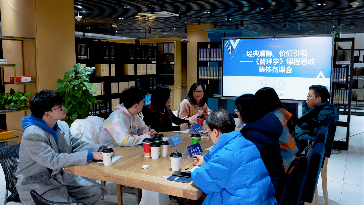 1月10日下午,《管理学》课程组举办“经典熏陶、价值引领”课程思政备课研讨会,这是管理学院(“数字化管理”省级课程思政教学研究示范中心)2024“铸魂有道”系列活动的第二期。会议特邀段显明教授和郑佳副教授作为辅导专家。课程负责人张蕊主持备课研讨会,课程组中的课程思政教学设计小组、课程思政效果观测小组教师及部分新加入课程组的教师参加了会议。