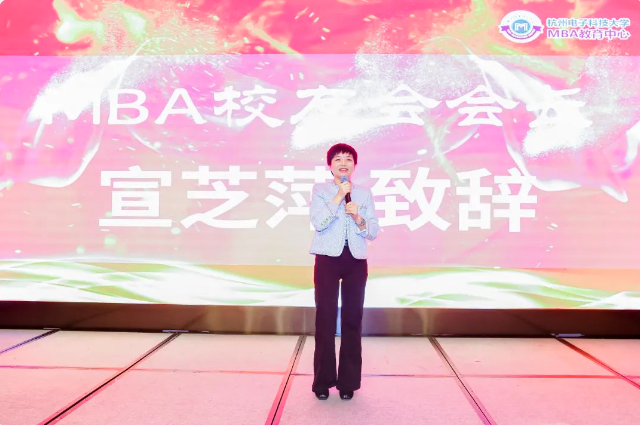 随后,管理学院杨伟院长向年会致贺,杨院长的致辞风趣幽默,又充满期盼鼓励,看到了同学们精心为年会准备的节目更是大加赞赏。作为校友年会的重要环节,MBA校友会会长宣芝萍随后上台致辞,宣会长在发言中讲到,校友年会旨在让更多的校友深度参与,展示自我,把校友会打造成真正为校友服务、为母校凝心聚力的平台,成为校友与母校之间的沟通平台。