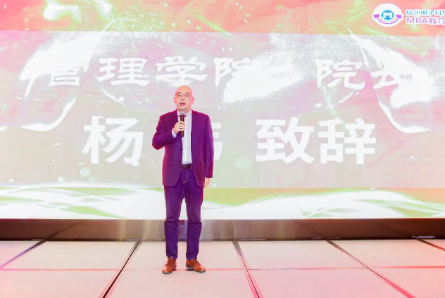 1月6日下午,杭州电子科技大学MBA教育中心2024年跨年盛典在杭州运河祁利酒店祁利厅隆重召开。杭州电子科技大学党委组织部、统战部部长周青,原杭电校党委副书记、浙江省信息化发展研究院院长、浙江省人民政府咨询委员会委员陈畴镛,校合作发展处处长张钟蕾,管理学院书记李国冰,管理学院院长杨伟,恒生电子股份有限公司执行总裁官晓岚先生,新华三集团副总裁兼首席信息官谌平等企业导师代表,MBA教育中心执行主任方刚,副主任禹献云,学院教师代表,MBA教育中心工作人员与22级、23级同学和校友代表们,欢聚一堂,共襄盛会。