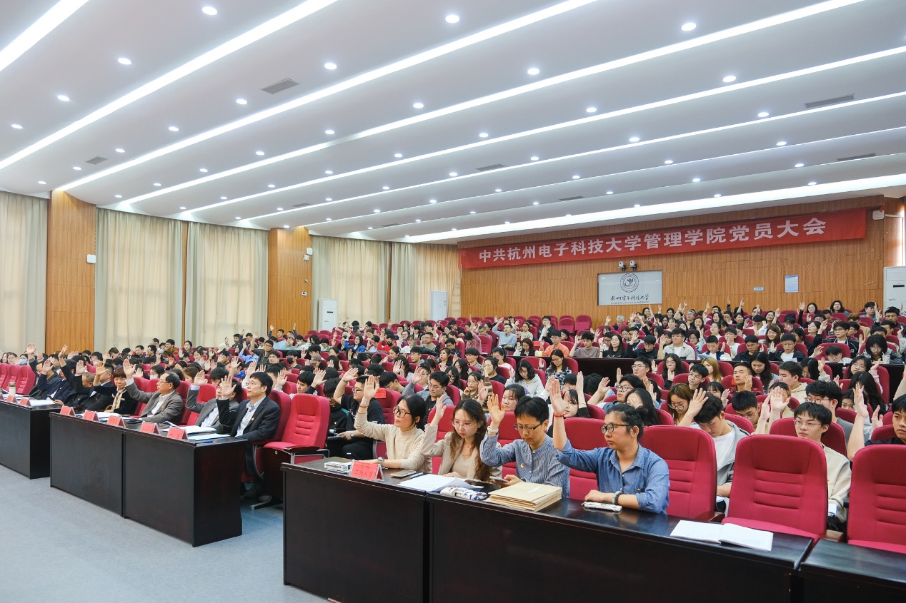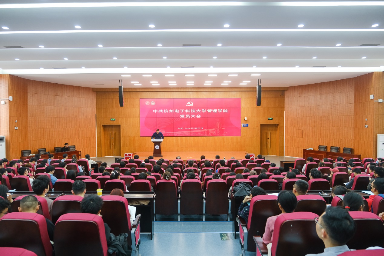 3月25日中午,管理学院在7教127多功能厅召开学院全体党员大会,选举产生管理学院出席中共杭州电子科技大学第四次党员代表大会代表,校领导郝敬习、原校党委副书记陈畴镛、原校人事处处长杜伟锦、原管理学院党委书记陈新、管理学院领导班子成员及学院296名师生党员参加会议,会议由管理学院党委副书记叶坚主持。