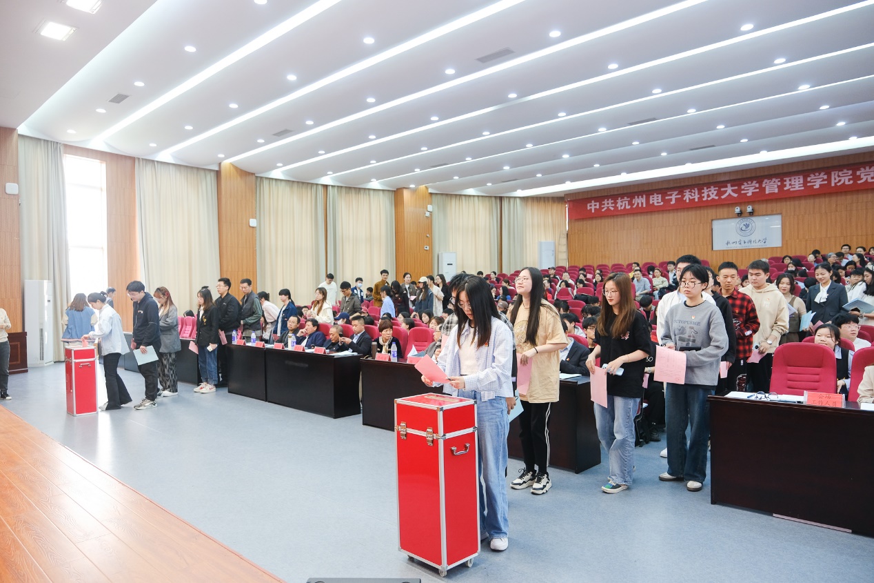 根据大会议程,大会听取并审议通过了《中共杭州电子科技大学管理学院党员大会选举办法(草案)》,审议通过了总监票人、监票人、计票人名单。全体参会正式党员以无记名投票、差额选举方式,选举产生校领导代表1名,教职工代表10名,学生代表2名出席学校第四次党代会。