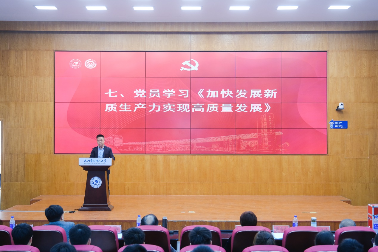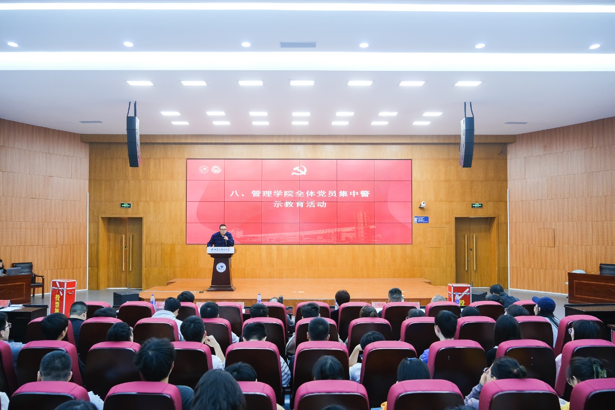 大会上,管理学院党委书记李国冰带领全体师生党员学习《加快发展新质生产力,实现高质量发展》主题党课,他勉励全体党员要在推进高水平大学建设和争创“双一流”建设中全力以赴,砥砺前行;管理学院党委副书记叶坚带领全体师生党员开展警示教育活动,集中观看《作风建设永远在路上》专题纪录片,让全体党员充分认识到作风建设不能是一阵风,作风建设没有休止符。