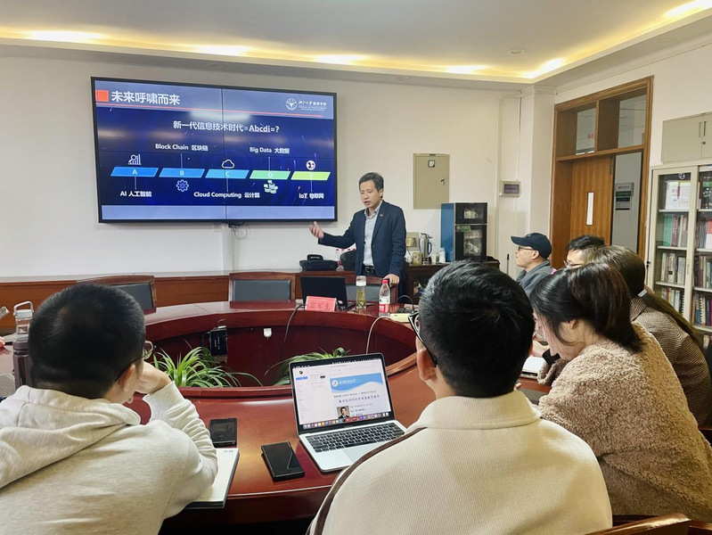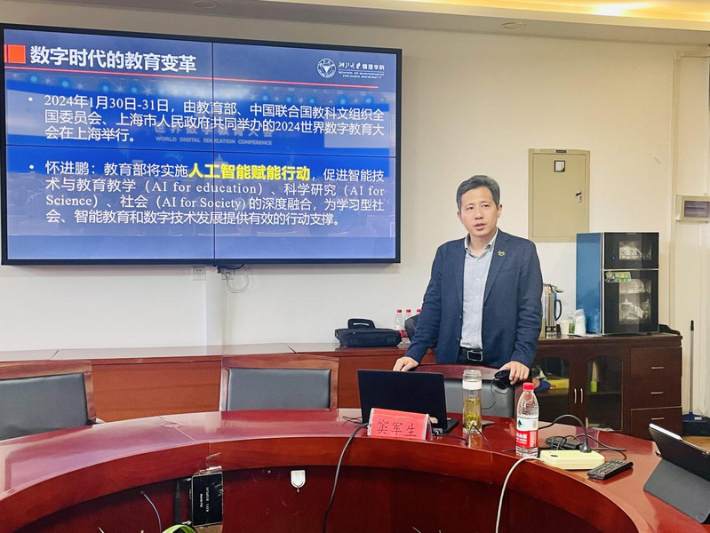 4月7日,管理学院(“数字化管理”课程思政教学研究示范中心)在第九教研楼430,举办了题为“数字化时代的管理类教育教学”的讲座。此次讲座为学院立质有为系列教学活动“审核评估”专项活动之一,邀请到了浙江大学管理学院副院长窦军生教授主讲。窦军生教授结合浙江大学管理学院的数字化教学改革经验进行了精彩的分享。活动由副院长胡保亮教授主持,各系主任、专业负责人、中心负责人和骨干教师参加了此次活动并与窦军生教授就专业建设、实验教学、课程思政等方面进行了深入的交流和访谈。