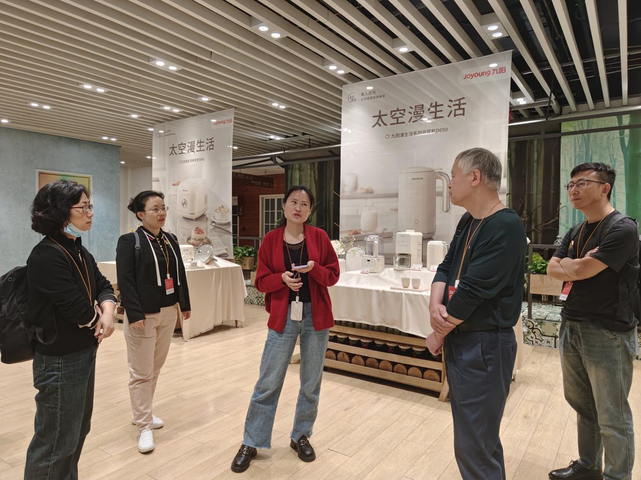 九阳运营部胡燕经理带领调研组参观了九阳电器新产品发展情况、特别是太空科技应用于电器开发的成果,并参观了九阳电器的智能化生产车间,让师生们直观感受了数智时代的生产模式。九阳人力资源部负责数字化人力资源管理项目的边琳丽经理为大家介绍了九阳利用北森系统开发数字化人力资源管理项目的基本情况,并与师生代表进行了深度交流。从交流中,师生们了解到九阳电器在数字化人力资源管理方面所做的具体工作、所取得的效果以及面临的问题。