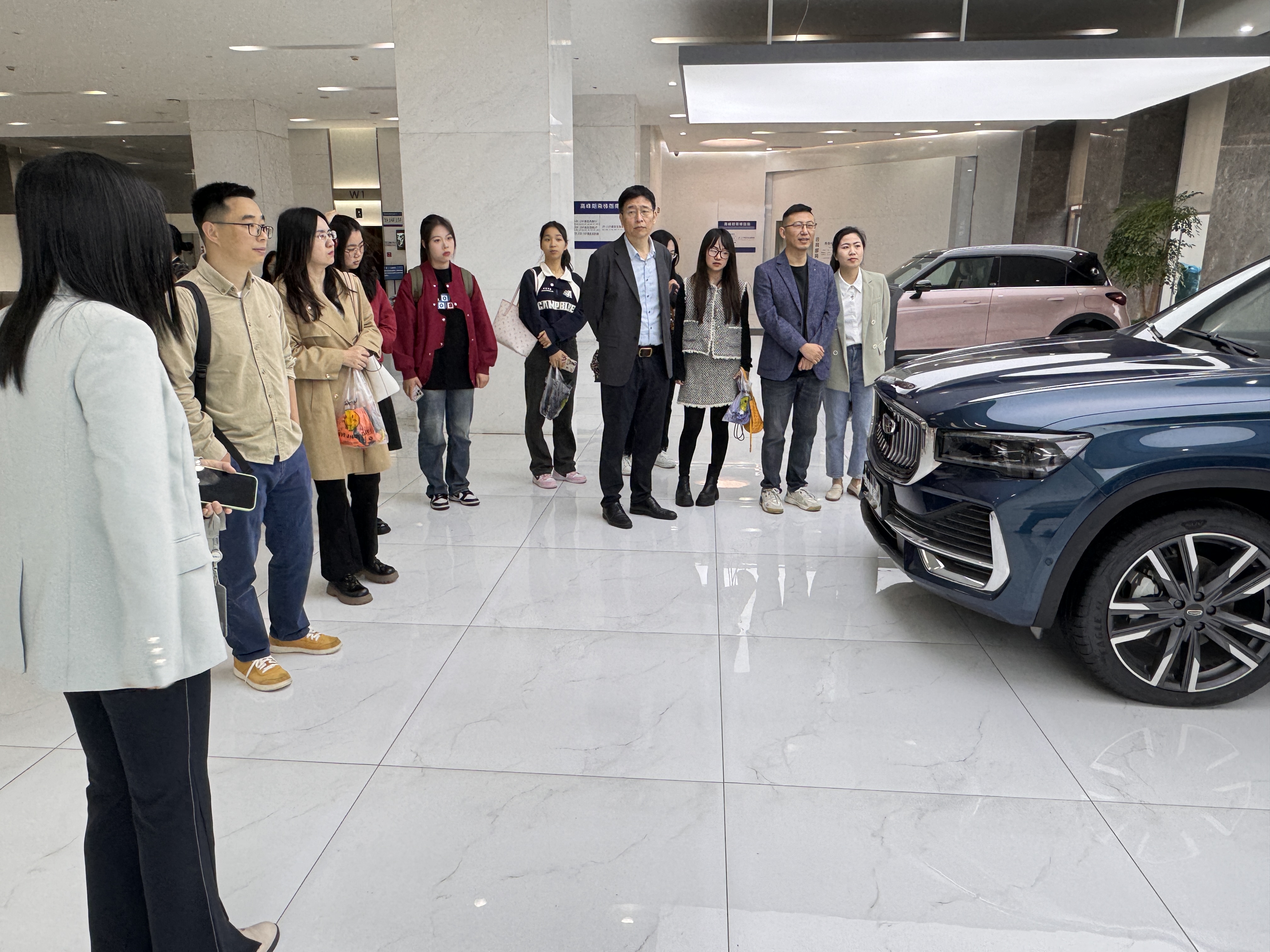 吉利集团人力资源部甘老师带领调研组参观了吉利的新产品和更新现有车型,了解吉利集团在数字化领域的发展情况,包括在吉利、银河、极氪、领克及smart等的应用。随后的座谈会,市场部聂老师围绕吉利集团发展、企业产业布局以及科技生态等方面与师生代表进行了深度交流。从交流中,师生们不仅对吉利集团的人才招聘标准有了进一步了解,同时也意识到提升毕业生自我素养(实习经历、数据分析能力、工作热情等)对于寻找工作的重要性。