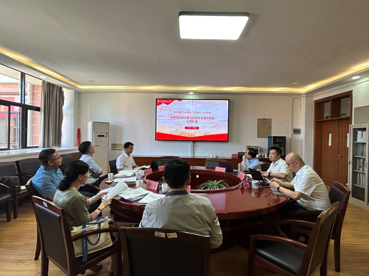 李文钧副校长一行在听取管理学院汇报与查阅相关资料后,高度赞赏了学院专业建设工作与审核评估工作,指出了学院专业建设未来思路与审核评估下一步重点,同时勉励学院课程思政工作进一步保持先进水平,也勉励学院教学工作为学校赋能。