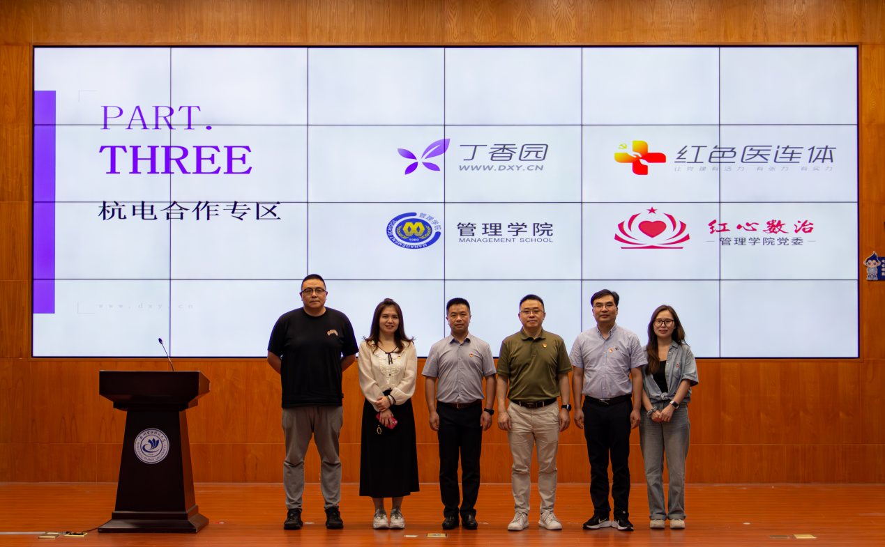 6月12日,管理学院与丁香园联合开展“心连心,健康同行”红心数治携手红色医连体共筑心理健康公益讲堂在7教127举行。丁香园副总裁、党委副书记毛蔚明,浙江中医药大学附属第二医院临床心理科主治医师邹莹为管理学院师生带来一场精彩的健康科普讲座,讲座由管理学院党委书记李国冰主持。