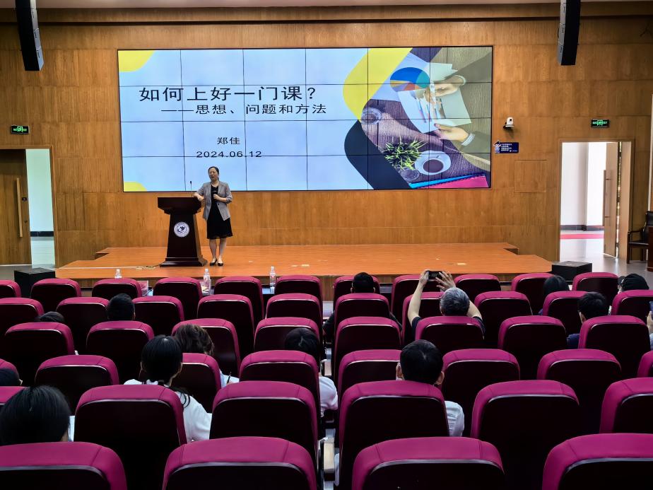 受学院委派,学院教发中心副主任、督导、国家一流课程主持人郑佳老师结合课堂听课体会,以“如何上好一门课”为主题进行了分享。她以教师的责任和使命为起点,从思想、心态和方法3个方面阐述如何上好一门课,鼓励学院老师将敬业和乐业相结合,认真上课,快乐工作,调整心态,轻装上阵。同时,就目前课堂教学普遍存在的“学生学习积极性和课堂参与度较低”、“学生课堂汇报的安排过于频繁和集中”、“同一门课,不同教师的教学效果差异较大”等问题进行了分析并提出了一系列解决方案。