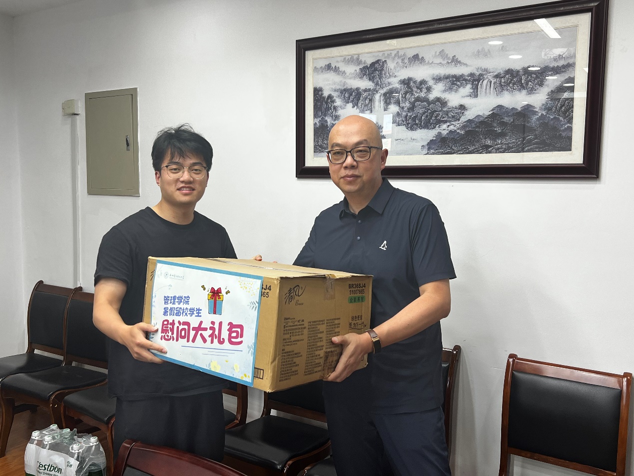 盛夏炎炎,关怀满满。为做好有温度的教育,关怀我院暑期留校学生。7月30日,管理学院院长杨伟、党委副书记叶坚、学工办主任张晓琪深入留校学生宿舍、研究生实验室开展走访慰问工作。