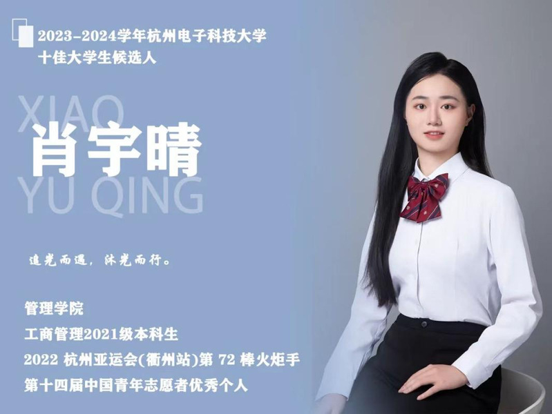 现任校团委组织部副部长、新生班助等职务。2022 杭州亚运会(衢州站)第72棒火炬手、第十四届中国青年志愿者优秀个人,专业综合成绩稳定专业前三,多次获得省政府奖学金、一等奖学金,获得中国大学生体育舞蹈锦标赛2金1银1铜等各类国家级奖项8项,省级及以上奖项20余项,个人先进事迹获中国青年报等50余家媒体报道,累计浏览量破亿次。