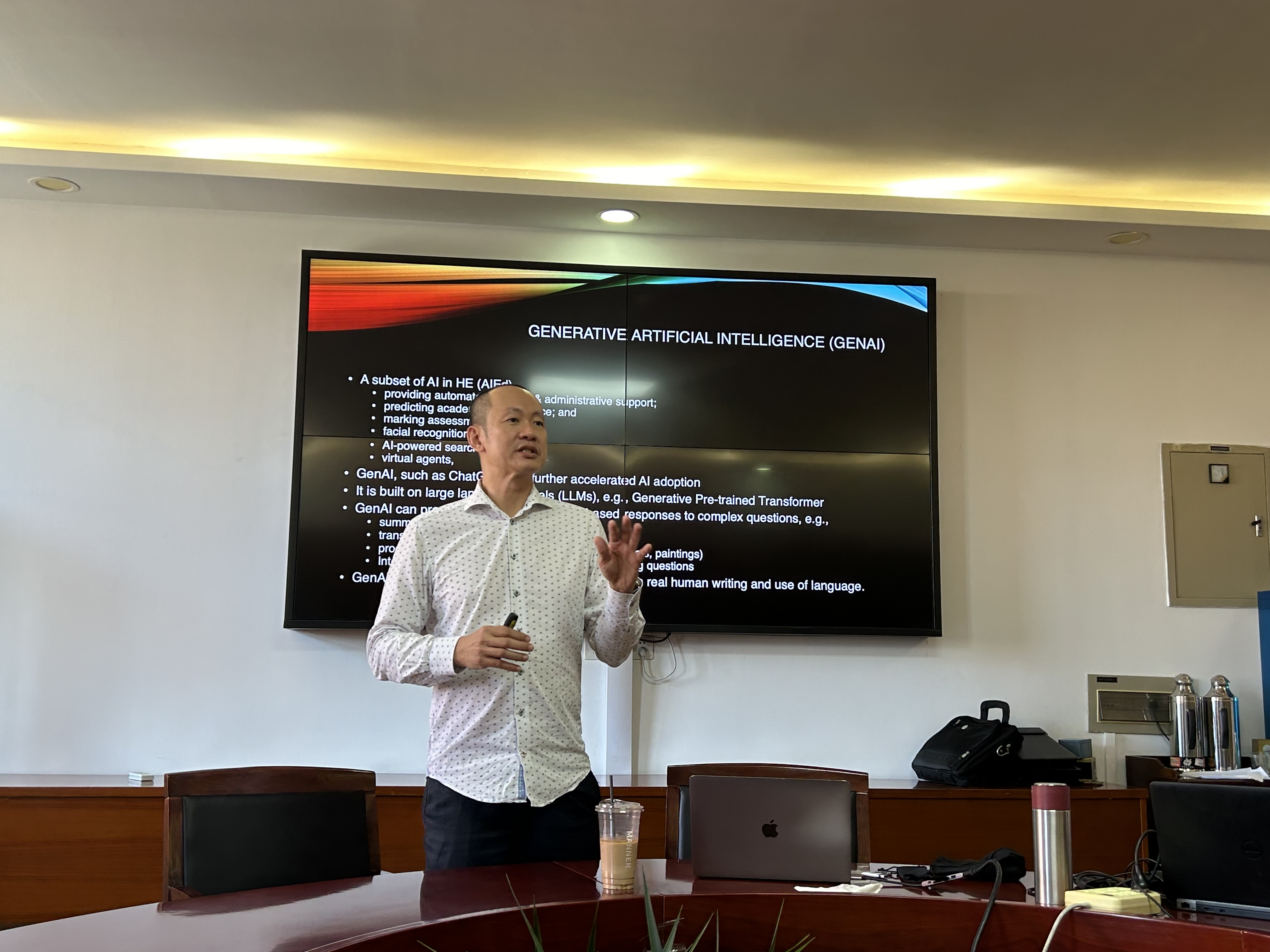 曾仁辉教授在讲座中以英国高等教育的实际情况为切入点,介绍了生成式人工智能在教学中的应用现状。他提到,英国高校的学生已经广泛应用生成式AI工具来辅助学习与完成作业。例如,许多大学允许并鼓励学生在学术写作、课程作业中合理使用人工智能,但同时要求学生在作业中明确说明哪些部分使用了人工智能工具,并解释其具体的应用方式。通过这种方式,学生不仅能够更高效地完成学习任务,还能培养他们对人工智能技术的批判性思维与创新应用能力。此外,曾教授还特别强调,随着人工智能在教学中的应用日益广泛,加强学生的伦理教育显得尤为重要。英国高校在推动AI应用的同时,非常注重引导学生合理合法地使用这些工具。