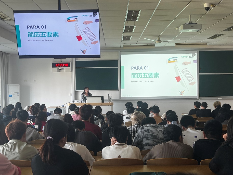 杭州有才信息技术有限公司资深HRBP柒月为同学们带来了应届生简历实战营分享。她从简历五要素、案例分享、简历中的同与异、简历指导四个方面向学院同学们讲解了简历制作中的模板选择、个人信息准确度、校园经历的可量化指标及与岗位的匹配度、实习经历的量化成果等方面要点,并分享了商务合作类、技术类、运营类、职能类的简历案例,让学生们更清晰地明确简历定位,有的放矢地展现个人优势。