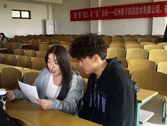 分享过后,杭州有才信息技术有限公司人力资源负责人梦龙与杭州有才信息技术有限公司资深HRBP柒月为现场同学们一对一“坐诊”,为同学讲方法、传技巧,提供针对性的简历制作指导,为同学们扫清就业道路上的绊脚石。两位老师从学生简历中的个人信息、校园经历、实习经历、技能证书和自我评价等方面找不足,并指导同学们进行相应的改正。两位老师还对学生简历的篇幅、排版等方面进行了详细指导,强调要突出与面试岗位相符的优势,让简历有重点,从而提高被录取的概率。