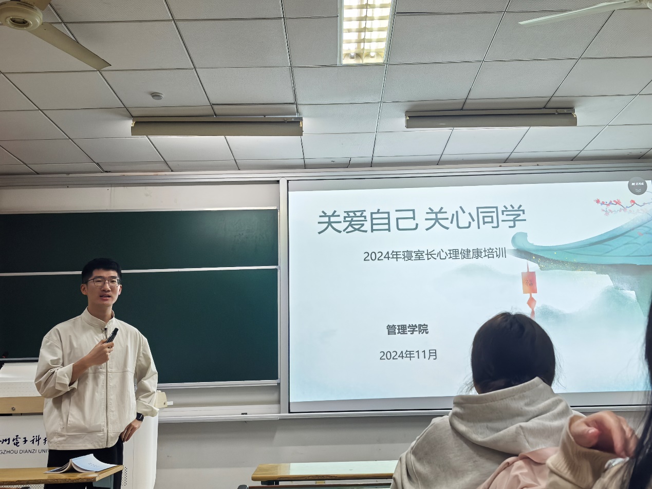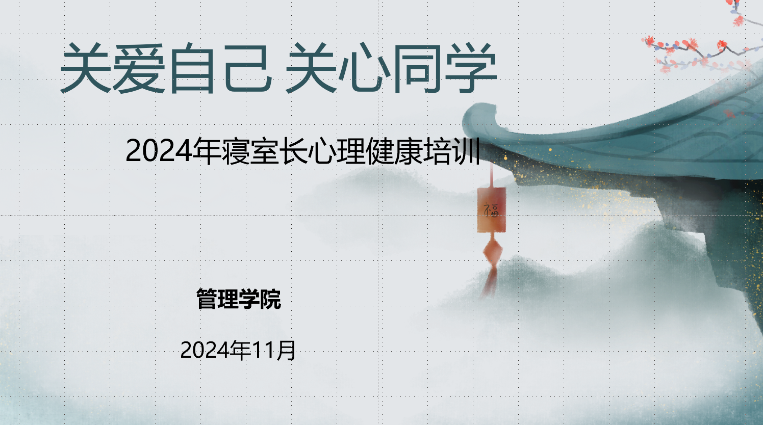 为深入贯彻落实学校“美丽校园”建设工作,进一步发挥寝室长的朋辈互助能力。11月14日,管理学院在12教108、212分别举行了2024级研究生寝室长心理健康培训和2024级本科生寝室长心理健康教育培训。培训由管理学院辅导员胡陈思、何平主讲。