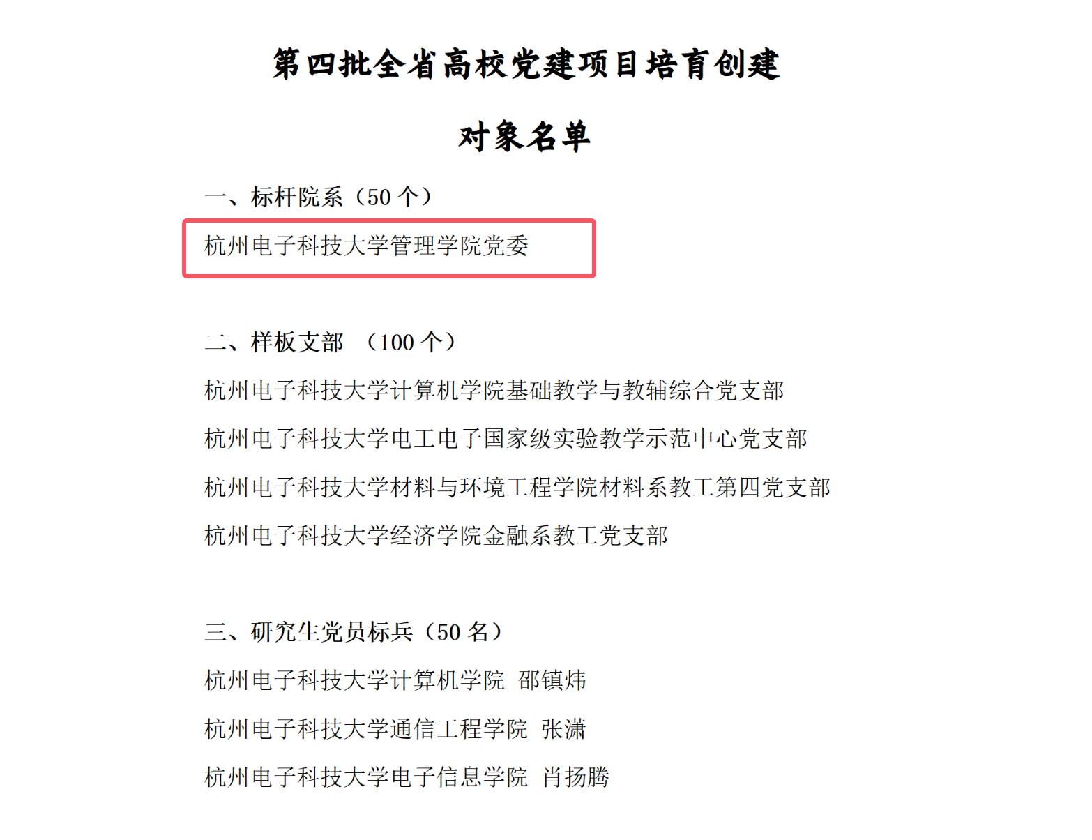 近日,浙江省委教育工委发布《中共浙江省委教育工作委员会办公室关于公布第四批全省高校党建项目培育创建对象名单的通知》,管理学院党委入选第四批全省高校党建标杆院系培育创建对象。