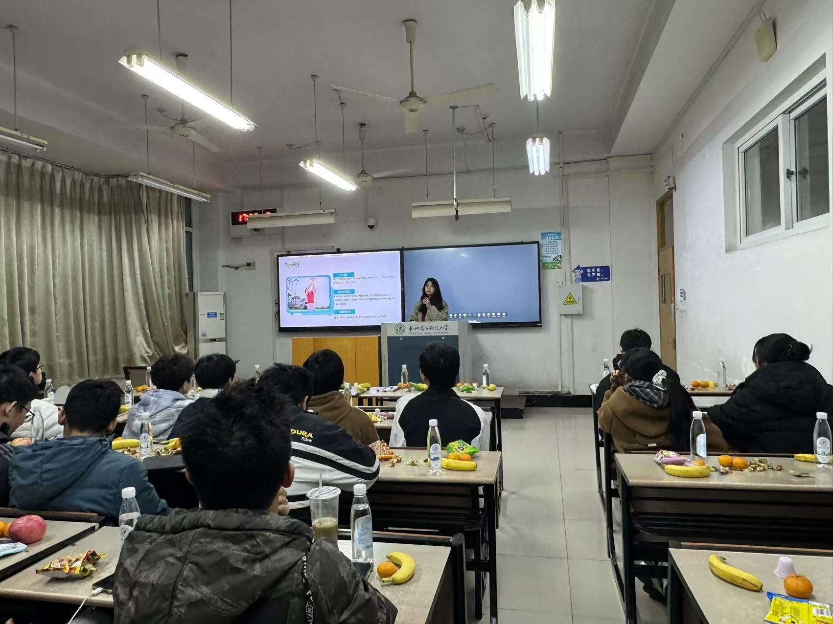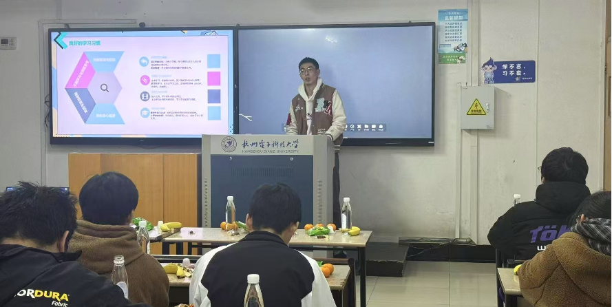 24届毕业生张文君同学,现为杭电研究生首先进行了分享。张文君同学围绕硕博连读的学习与生活体验,向学弟学妹们介绍了个人时间管理和学业提升的策略,强调了规划生活、努力学习的重要性,同时鼓励大家在学习之余,也要注重个人兴趣和视野的拓展。