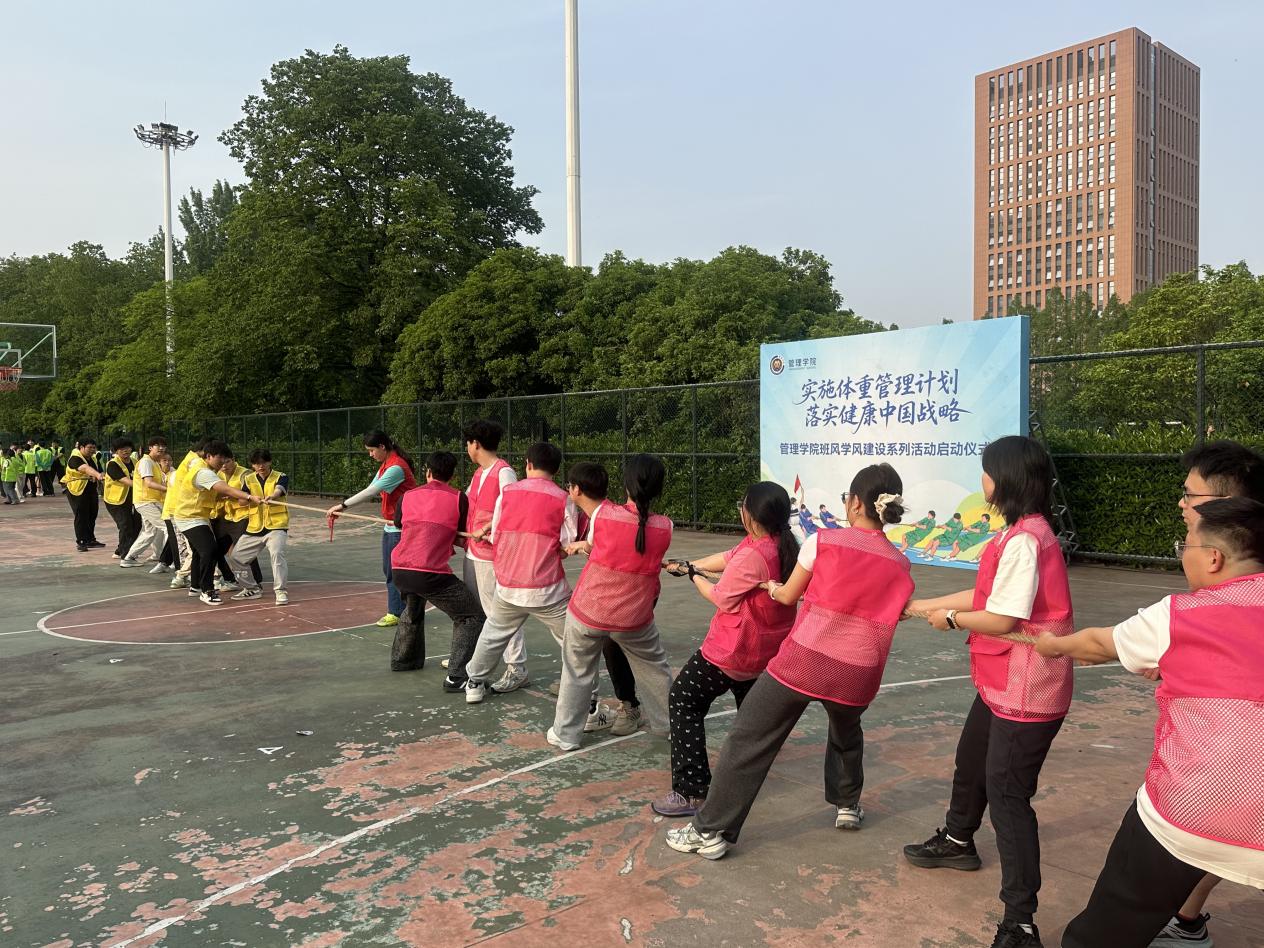 管理学院"实施体重管理计划,落实健康中国战略"班风学风建设系列活动在热烈氛围中以拔河比赛拉开帷幕。此次比赛吸引了来自学院各年级的9支队伍同台竞技。