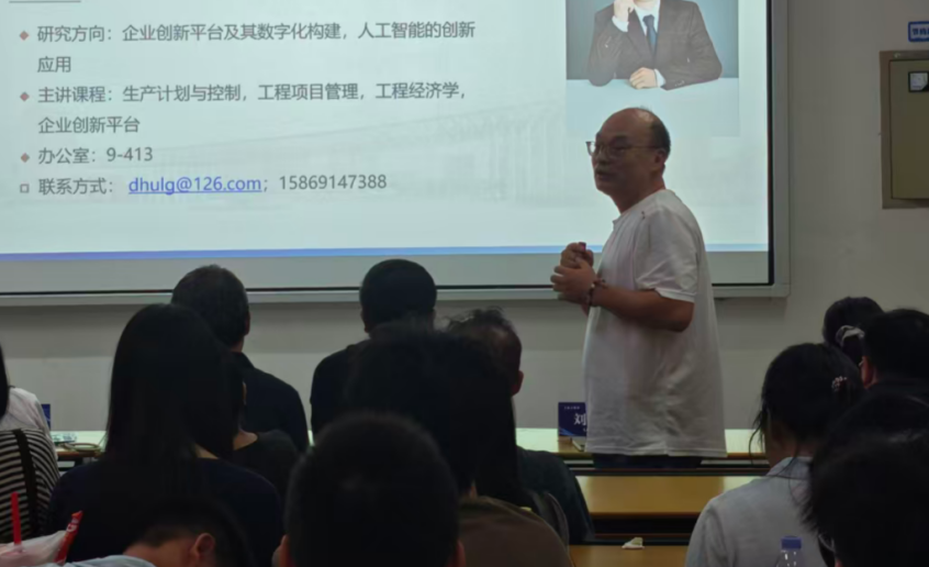 刘广老师通过往届生案例展现了专业的发展前景。他分享了一名学生在校期间参与工业4.0项目并毕业后结合AI成功创业,以及另一名学生因表现积极赴海外深造后入职华为的典型案例,鼓励新生拓宽视野、提前规划、积极行动。