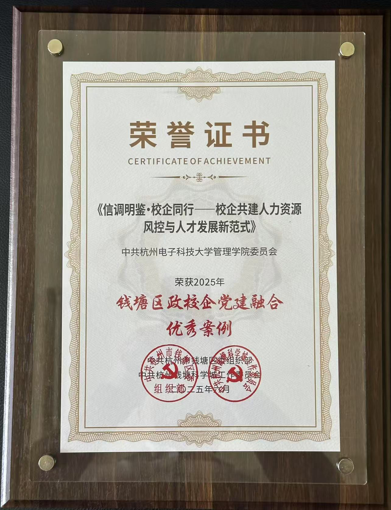近日,2025钱塘区政校企党建融合优秀案例榜单新鲜出炉,学院党委与杭州有才信息技术有限公司(以下简称“i背调)合作的“信调明鉴·校企同行”党建品牌强势上榜,斩获优秀案例荣誉称号!这项荣誉不仅是对学院党建工作的高度认可,更是校企携手在人才培养、科研创新等领域交出的亮眼答卷。
